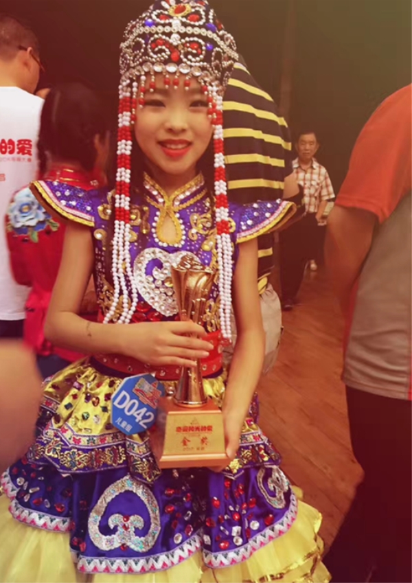 榮譽記錄:2017年榮獲快樂陽光第十三屆中國少年兒童歌曲卡拉OK電視大賽全國總決賽兒童D組金獎;2018年榮獲快樂陽光第十四屆中國少年兒童歌曲卡拉OK電視大賽全國總決賽兒童E組第一名并榮獲特別大獎;